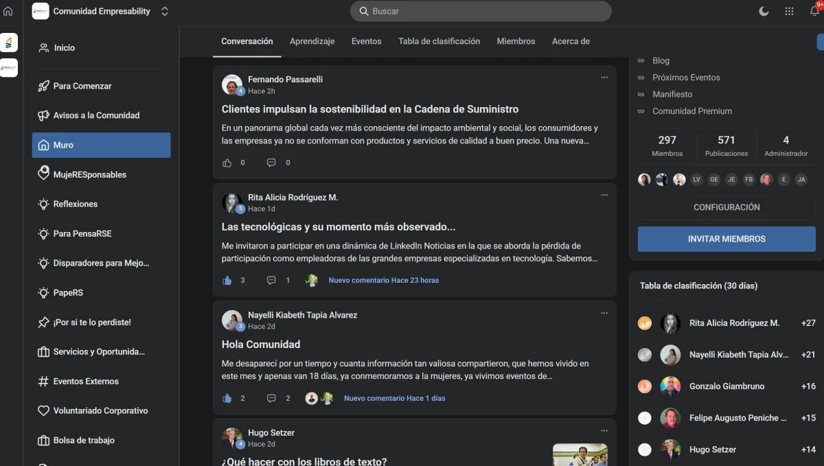 Acceso a cafés, foros temáticos (MujeRESponsables, Voluntariado Corporativo) y